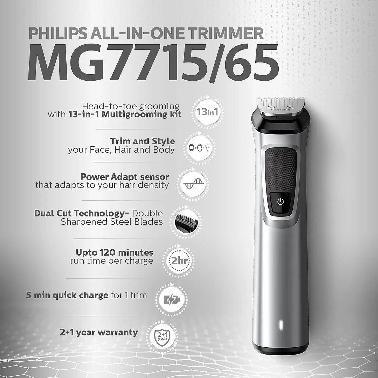 / All in One Trimmer | 13 in 1 for Face, Head and Body | Power adapt technology | MG7715/65