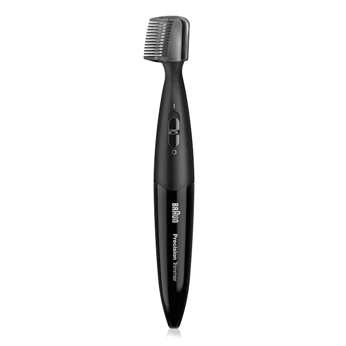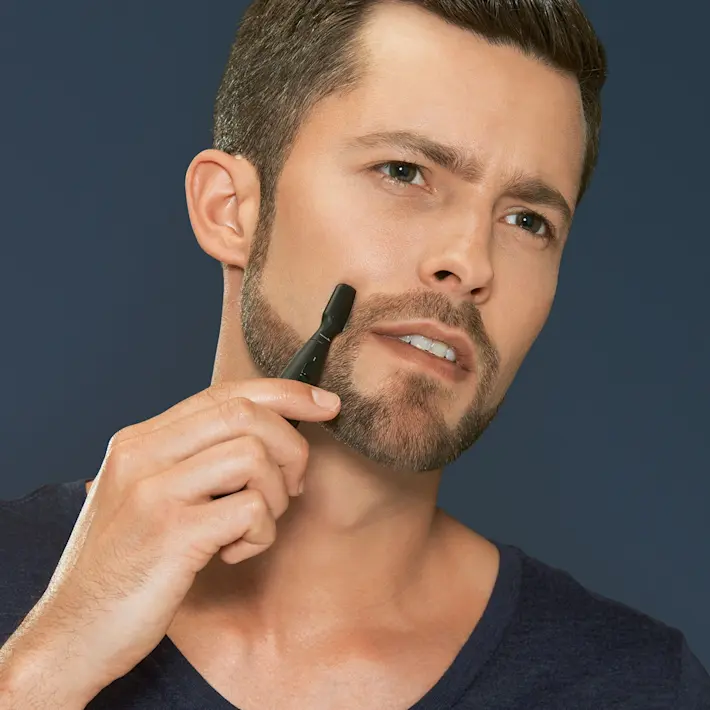 Defines sharp lines and shapes with the extra small head. It also lets you trim those hard-to-reach areas like under your nose or chin.