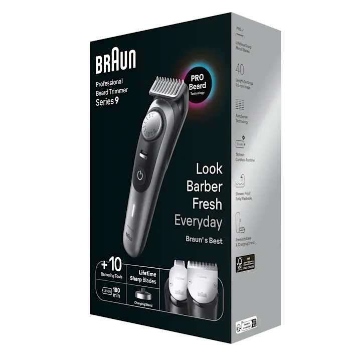 / Braun Pro Beard Trimmer 9 BT9420 With ProBlade, ProWheel, Lock, 10 barbering tools, 180min runtime, grey