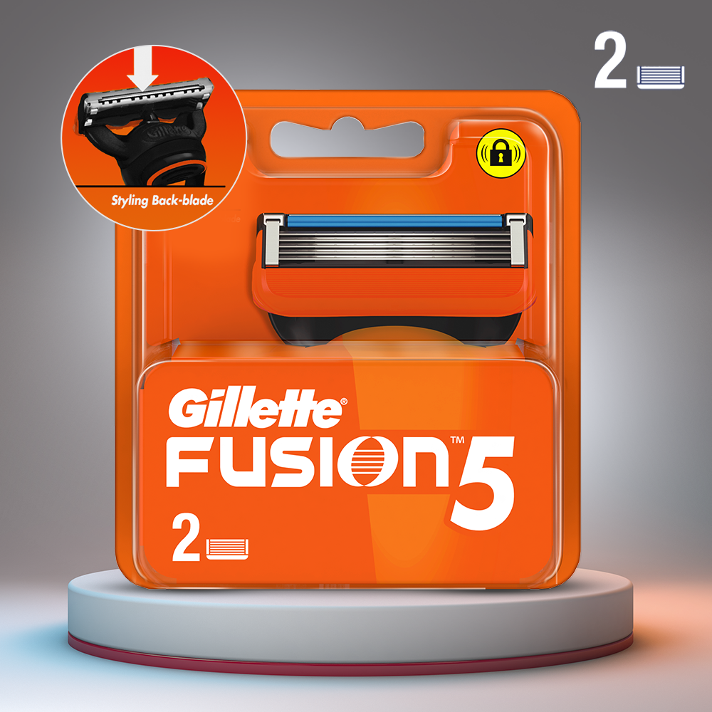 Make sure you are always stocked up on Gillette Fusion Manual Refill Cartridges. Gillette Fusion offers every man, whether clean-shaven or with facial hair, a wonderful way to shave. Gillette Fusion features a 5-blade Shaving Surface technology on the front of the shaving cartridge. The blades are spaced 30% closer together than the Mach3 razor family. This creates a shaving surface that distributes the shaving force across the blades, including a Lubrastrip which fades from green to white, signalling when shave conditions have been reduced. The Precision Trimmer blade is a single blade built into the back of the cartridge. That’s a great shave.
