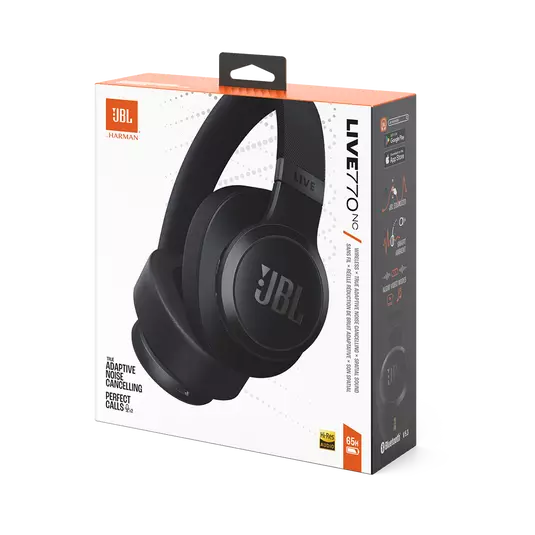 JBL Live 770NC headphones deliver powerful JBL Signature Sound in a comfortable over-ear headband style. When you’re deep in your flow, True Adaptive Noise Cancelling with Smart Ambient technology keeps you free from distractions. Or, if you want to keep an ear open to the world around you, you can even have a conversation without taking the headphones off. Easily access your preferred voice assistant with either a hotword or a tap on the earcup to play your favorite playlist, text your friend, check the weather, and much more. You’ll enjoy 65 hours (50 hours with BT+ANC on) of music streaming. Need even more? A 5-minute speed charge gets you another four hours. The JBL Live 770NC can connect with two Bluetooth® devices simultaneously, so you’ll never have to miss a call even if you’re watching a movie on your tablet.