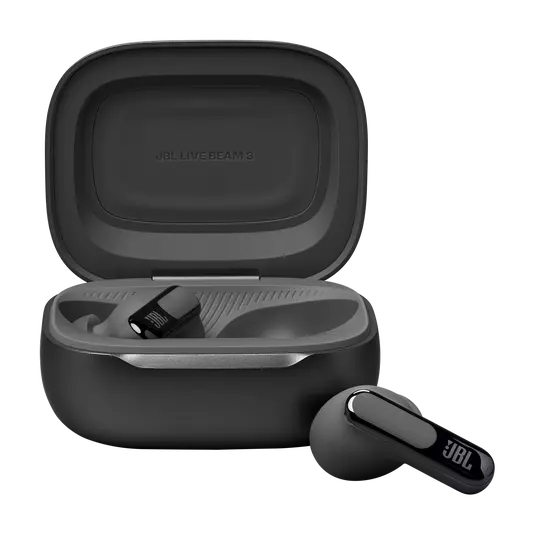 Get customized sound without ever looking at your phone. Use the controls on the Smart Charging Case™ of the JBL Live Beam 3 true wireless noise-cancelling earbuds with Hi-Res Audio to customize all their features without opening the JBL app on your device. Adjust volume and EQ, control your music, take phone calls, see messages—you can even customize the screensaver with your favorite photos. And that’s before you even get to enjoy the monumental JBL Signature Sound of the Live Beam 3 earbuds themselves. Best-in-class True Adaptive Noise Cancelling tunes out distractions. JBL Spatial Sound makes movies and music truly immersive. And if you have to take a call, 6 mics ensure perfect sound quality even in the noisiest surroundings. All this plus a 48-hour charge: 12 hours in the buds* and another 36 in the case—and they can charge wirelessly. The charging case features a loop to attach a lanyard for even more convenience. Great sound has never been simpler. (*with ANC off)