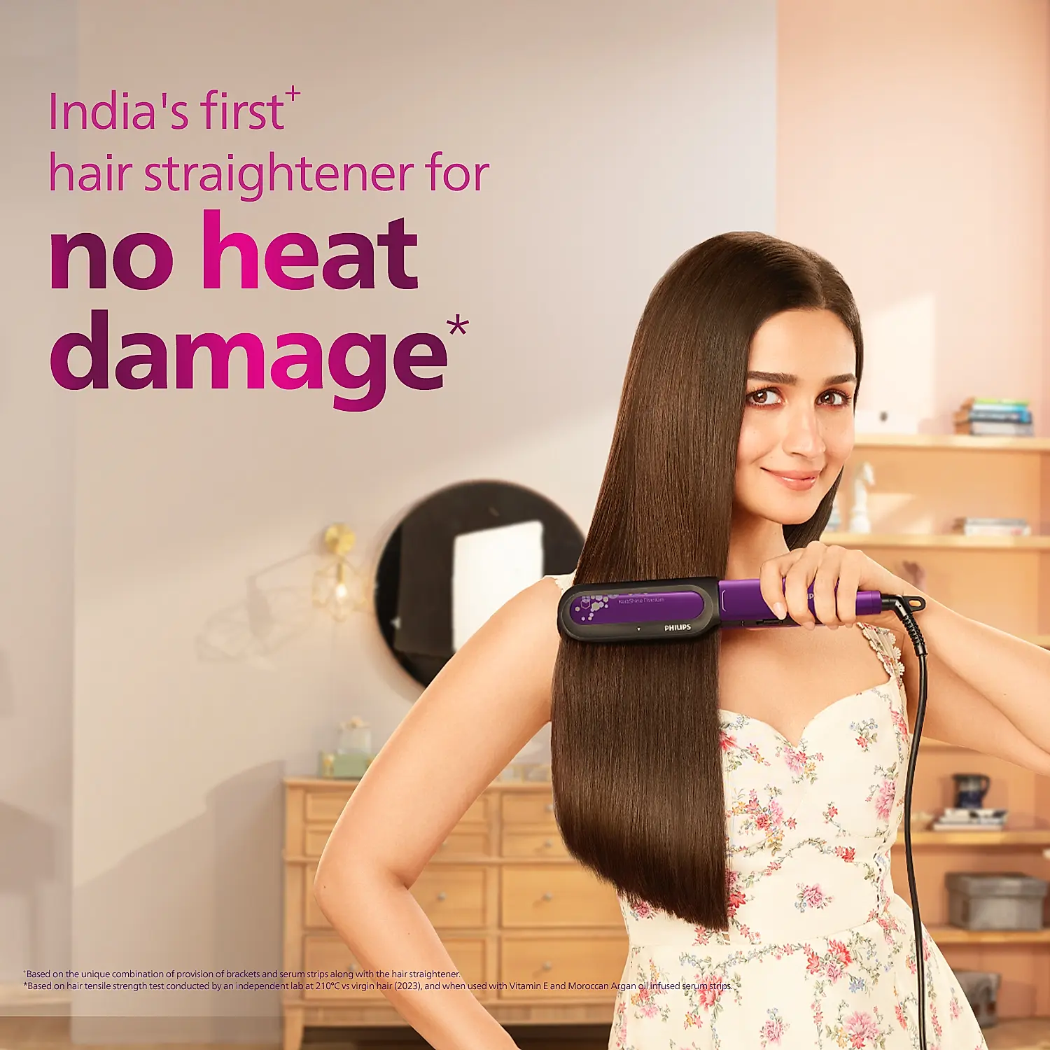 NourishCare India’s First Hair Straightener designed for No Heat Damage I Uniquely designed NourishCare & SilkProtectCare for Styling with heat protection | BHS522/00