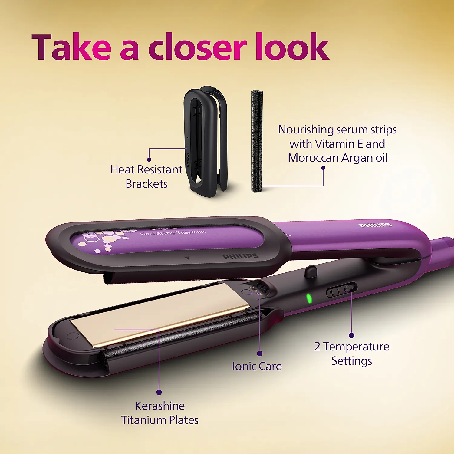 NourishCare India’s First Hair Straightener designed for No Heat Damage I Uniquely designed NourishCare & KerashineCare for Styling with heat protection | BHS526/00