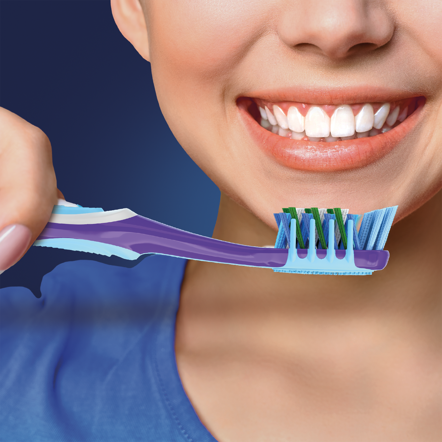 • Power Tip bristles help clean in between teeth and hard to reach areas