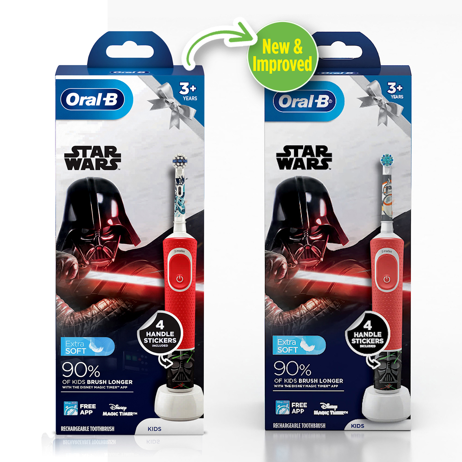 The Oral-B Kids Electric Rechargeable Toothbrush, featuring Disney Star Wars characters, puts the power in the hands of your own budding superhero. This electric rechargeable kids toothbrush features extra-soft bristles for young mouths and is compatible with the Disney Magic Timer App by Oral-B. Download the app to help your kids brush for a dentist-recommended 2 minutes and learn proper oral care habits that will last them a lifetime.