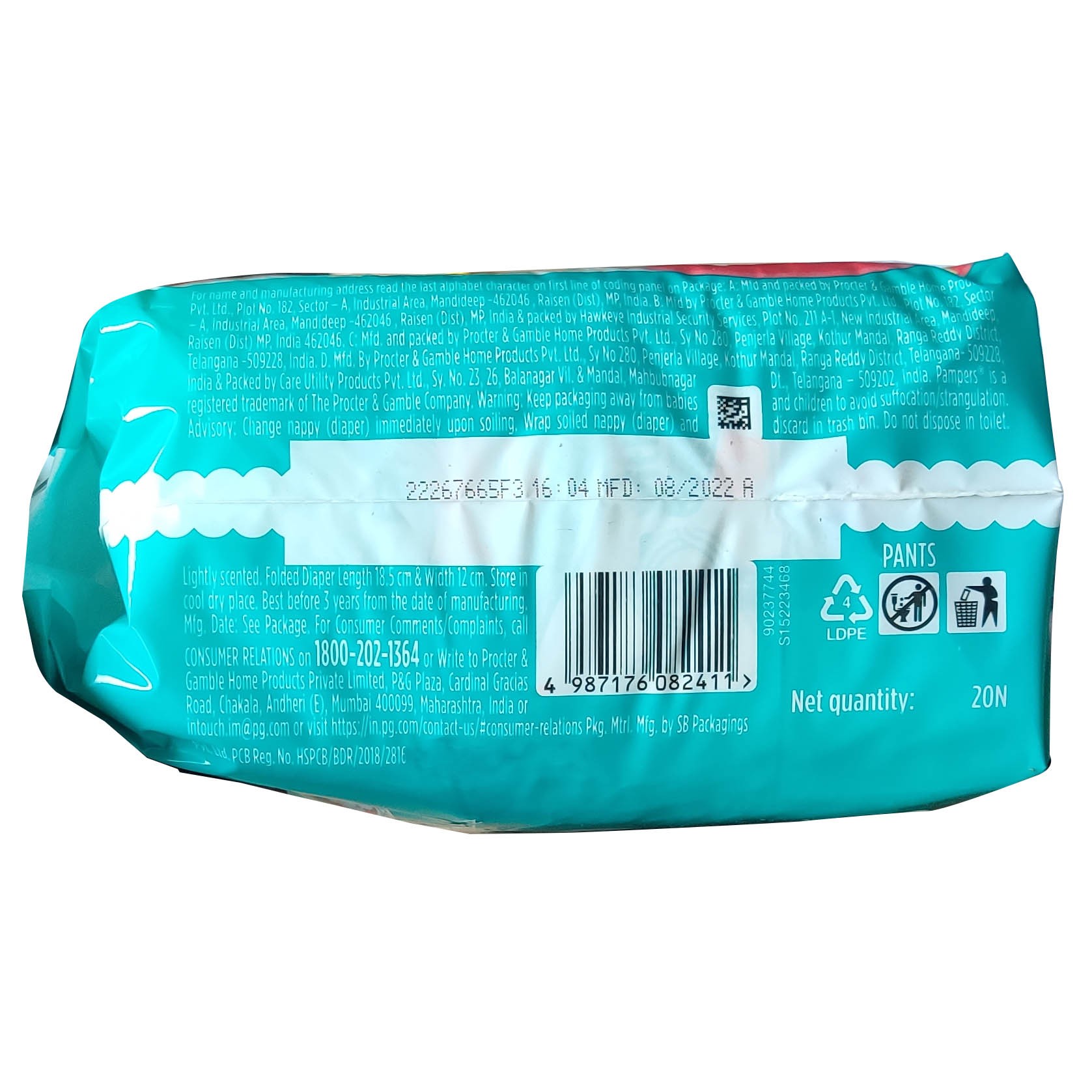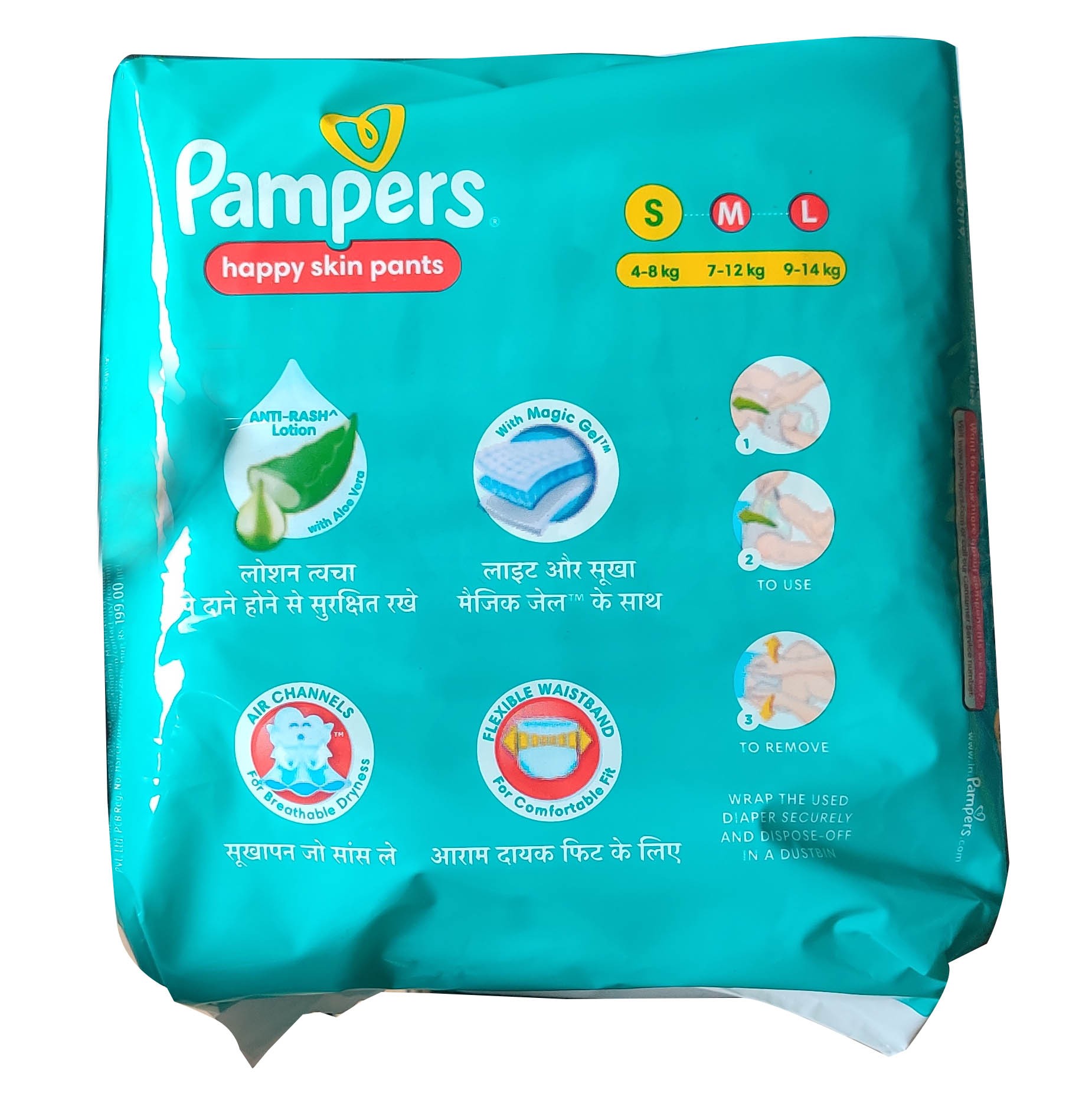 Product : Pampers Happy Skin Pants – Pack of 20 – Small 4 – 8 kg with Aloe Vera Product Code : 4072