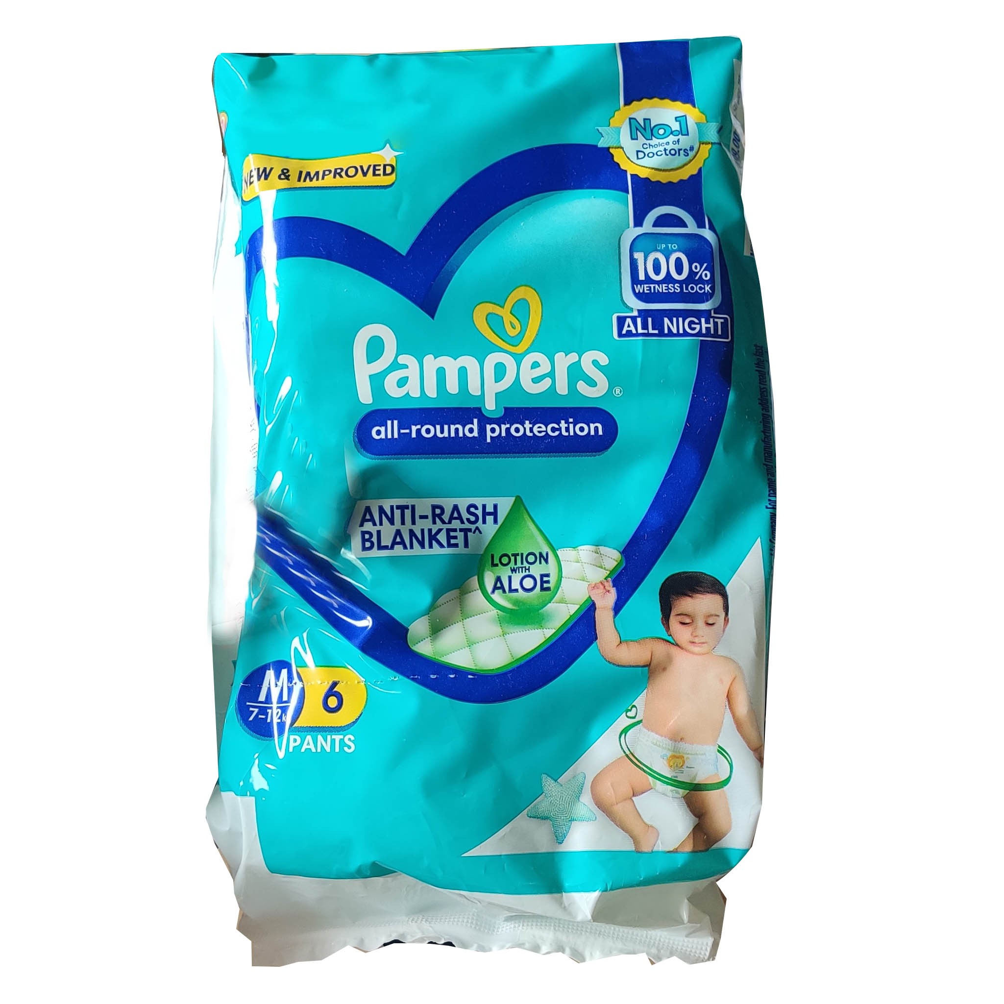 Product : Pampers Pants – Pack of 6 – Medium 7-12 kg Lotion with Aloe Product Code : 4068
