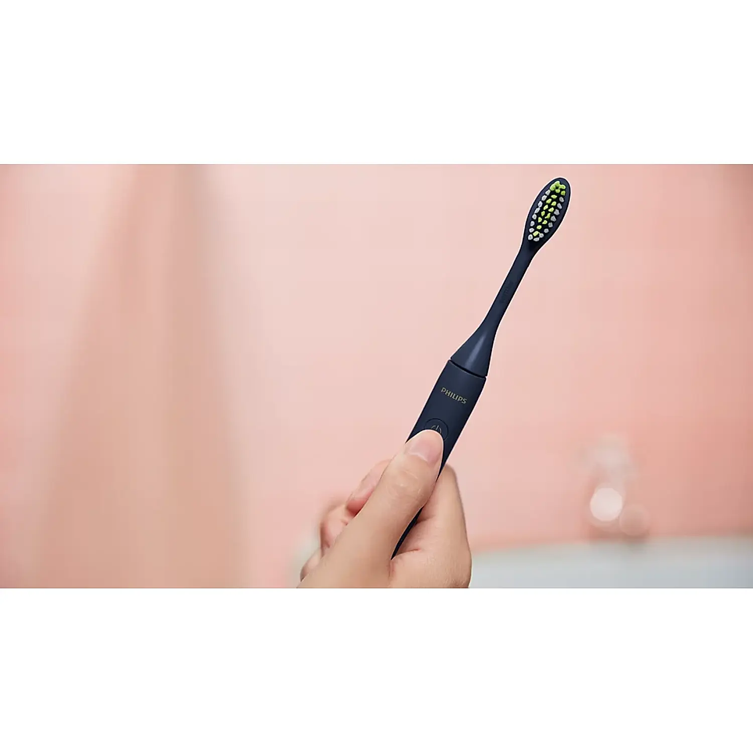 Think of the One as a powered version of your manual toothbrush. Microvibrations and contoured bristles gently clean and polish your teeth at the touch of a button.