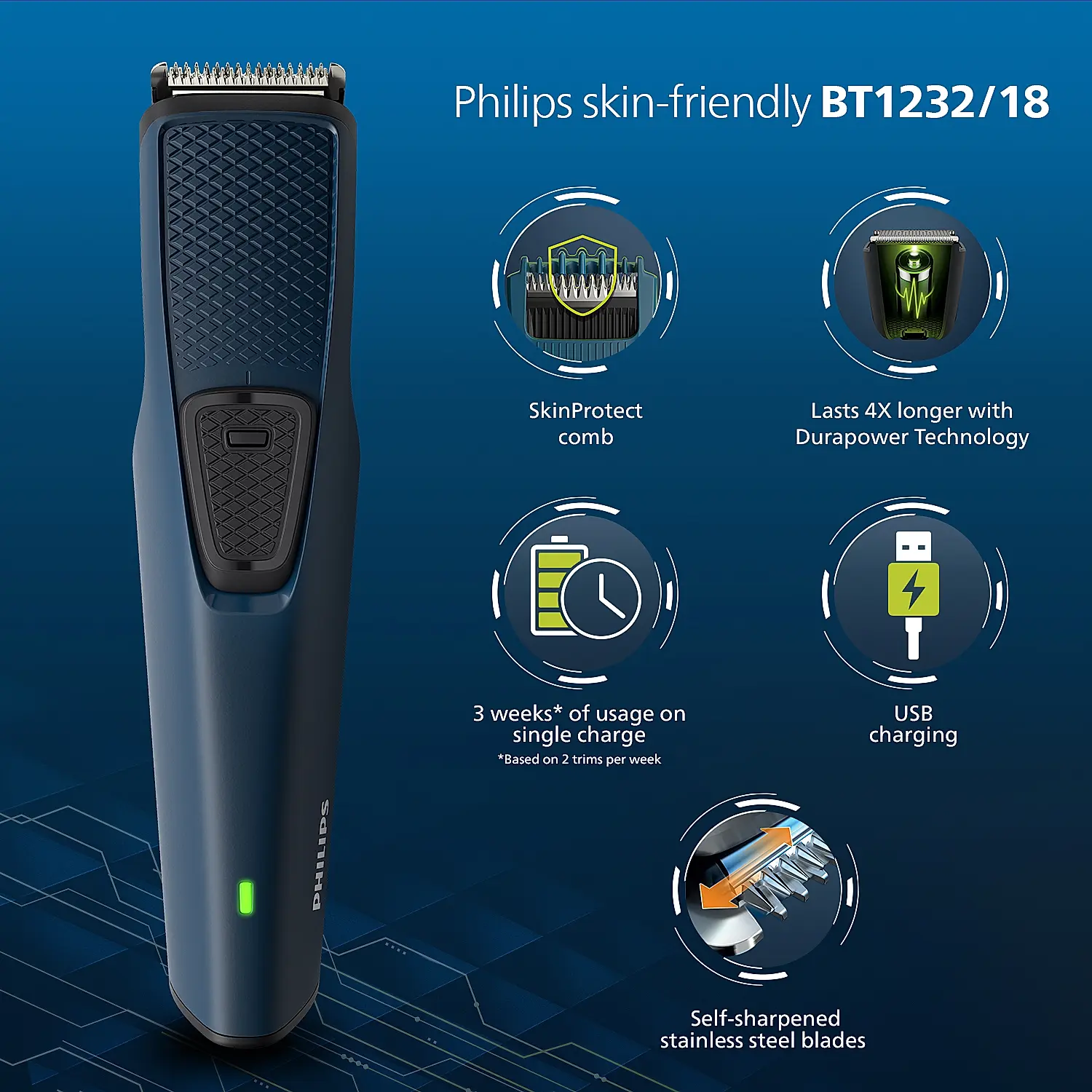 SkinProtect Beard Trimmer I Lasts 4x Longer with DuraPower Technology | Charging Indicator | BT1233/18