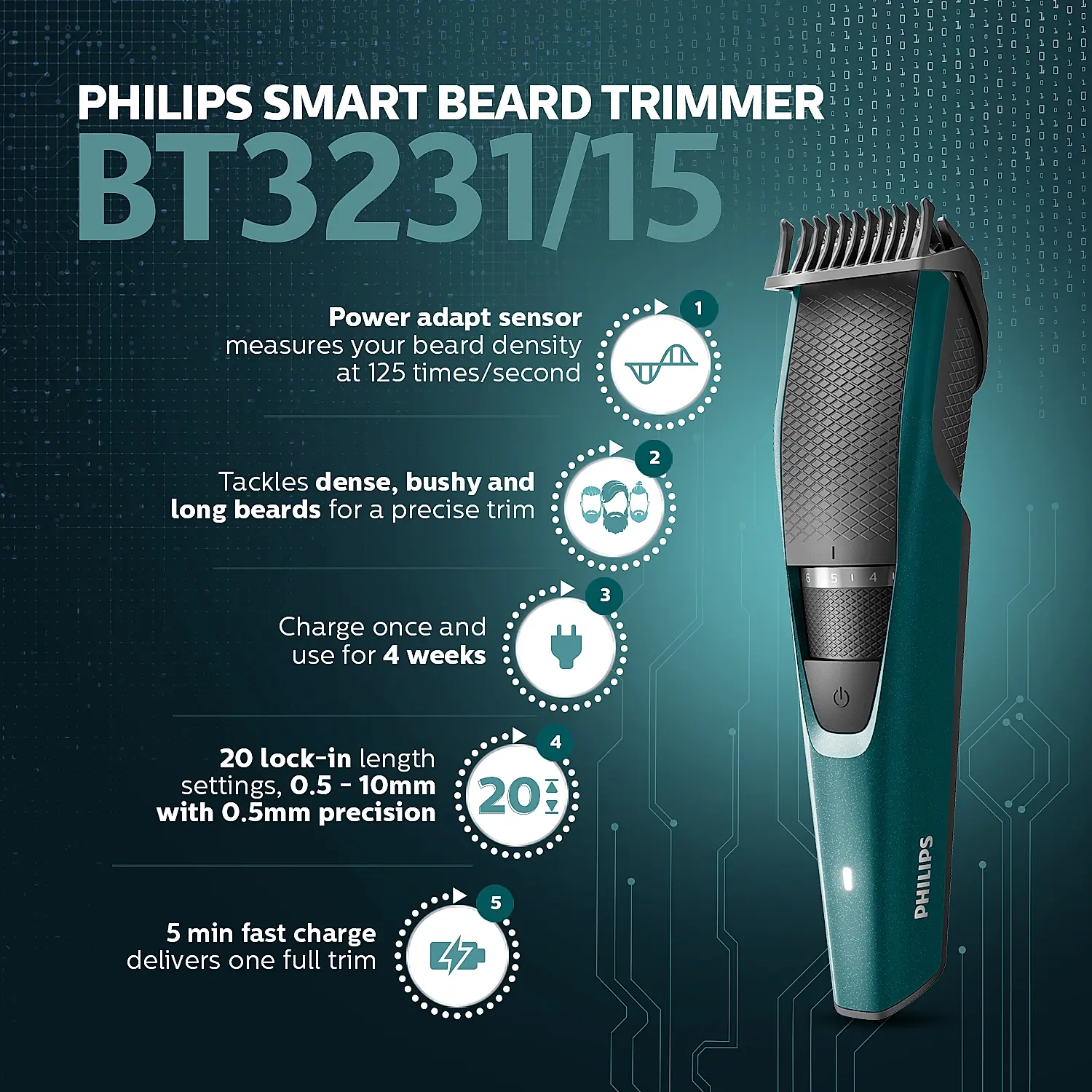 / Smart Beard Trimmer | Power Adapt Technology | Precise Trimming | Quick Charge | BT3231/15