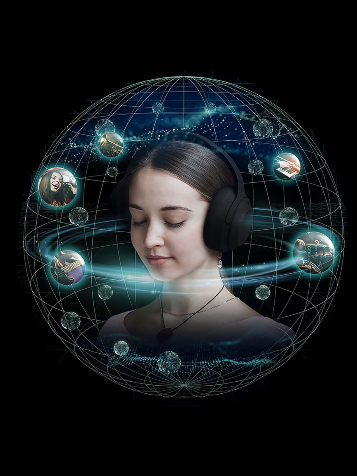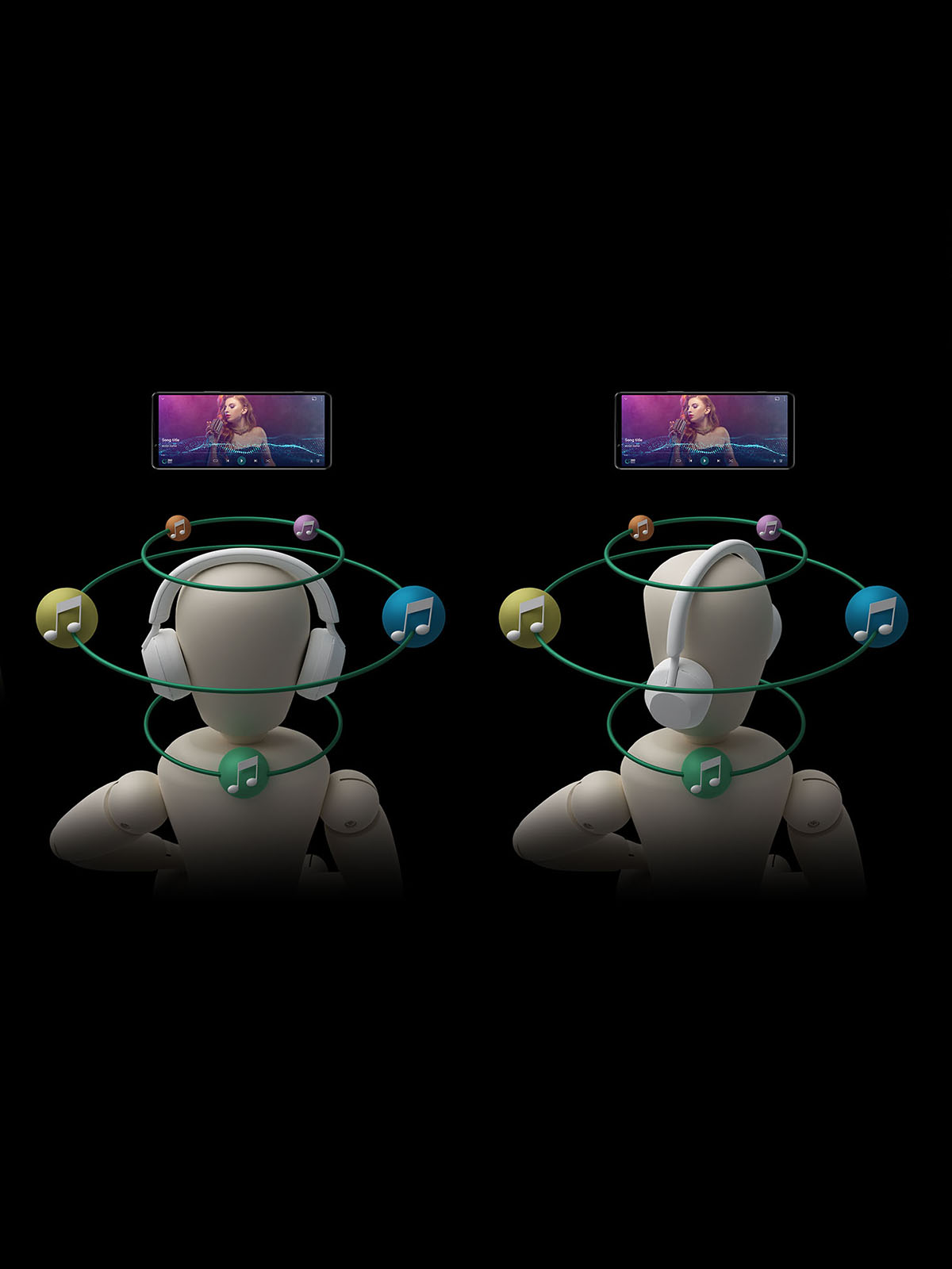 The Sony ULT WEAR features a head-tracking function that creates a realistic and immersive listening experience. This technology automatically adjusts the sound fields to match your head movements, keeping sounds aligned with your smartphone screen. Unlike conventional headphones, which shift the sound with your head movement and disrupt the 3D effect, the head-tracking function maintains the original position of the sound in 3D space, ensuring a consistent and engaging audio experience.